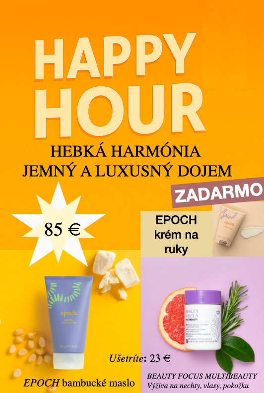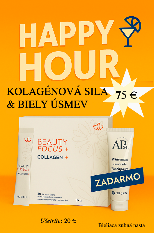 Dopraj si chvíľku pre seba a objav silu produktov, ktoré rozžiaria tvoju pleť, posilnia tvoje vlasy a nechty – a navyše ti vyčaria úsmev. V rámci limitovanej Happy Hour ponuky ti prinášame štyri exkluzívne balíky, ktoré kombinujú krásu zvnútra aj zvonka. A ako bonus? Darčeky ZADARMO, ktoré potešia tvoju pokožku aj zuby!